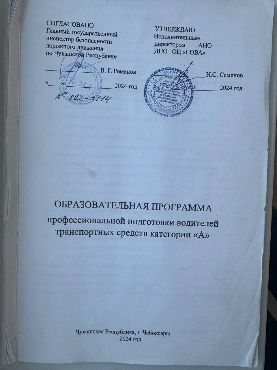 Программа профессиональной подготовки водителей транспортных средств категории "А"