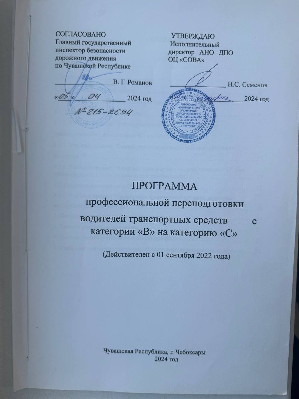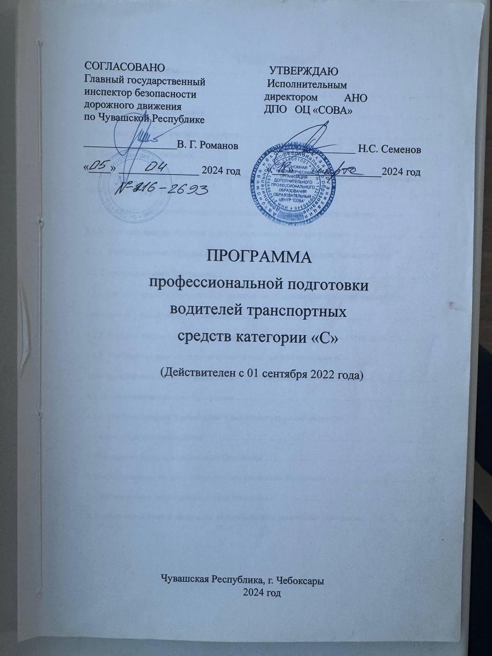 Программа профессиональной подготовки водителей транспортных средств категории "С"